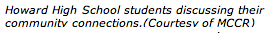 Recently, Parry, now the Executive Director of MCCR, and Beddow took another look at a community partner they had been neglecting in their own community. While youth had been active collaborators in community development since the spending study, the school as a partner had faded from the forefront of the projects. They realized once again that no community can be fully viable without successful schools and student and school input and participation, and so they aimed to spearhead renewed efforts to bring the school and all of its resources back into the process.