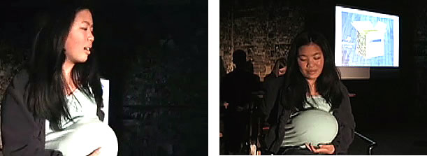 “There was an art component, too. We have a digital design class and the students downloaded their interviews, took symbols from their monologues, and created an interactive flash presentation with the symbols that connected to parts of the interview. When the students performed their monologues, we projected these flash animations on the screens on either side of them. It created a really nice mood.