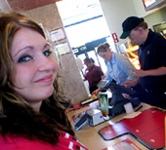 Indeed, the students found that deaf people's experiences in restaurants are similar across the country. Their research began on the web, compiling data from deaf community restaurant review sites. Then, they traveled to Deaf Awareness Fairs and Deaf Expos to hand out narrative surveys, accompanied by energetic teacher Susan Outlaw. To Outlaw, who holds a doctorate in Linguistics, it was "important that they learn to do sophisticated research and analysis, and to put the scientific method into practice. Learning to do survey work and determine the difference between objective and subjective thinking is an essential skill."