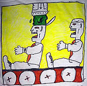 I’ve made T-shirts with different slogans on them and illustrations of my take on political socialization—the way beliefs are processed and how we’re given certain beliefs. One T-shirt I have is people going on a conveyer belt and having beliefs kind of implanted in them. And then I’ve also done collages taking pictures of different politicians, and then expanding, drawing from them, and including little short sentences or fragments of my thoughts at the time.